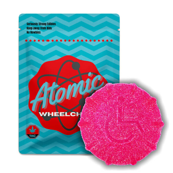 Atomic Wheelchair Gummy in Blueberrys flavor offers a potent, tasty cannabis edible designed for strong, long-lasting effects combined with a delicious blueberry taste.