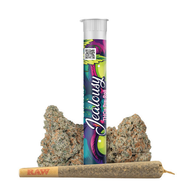 Jealousy THCa Pre-Roll is a top-shelf, ready-to-smoke joint featuring the ultra-potent and flavorful Jealousy strain, packing a hefty 26% THCa (converts to ~23% THC when smoked). Here’s everything you need to know: